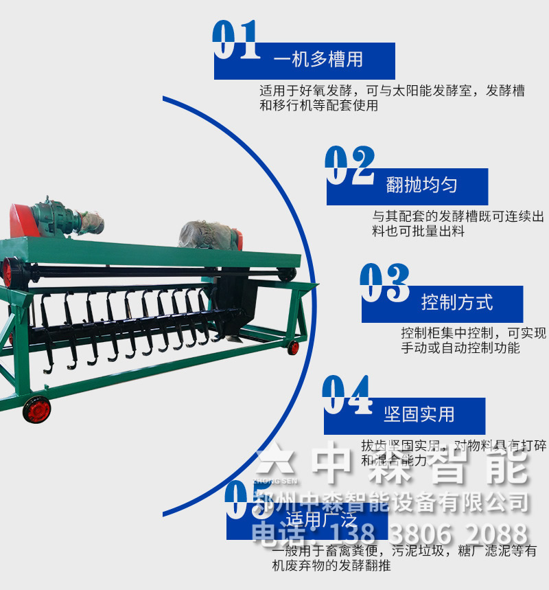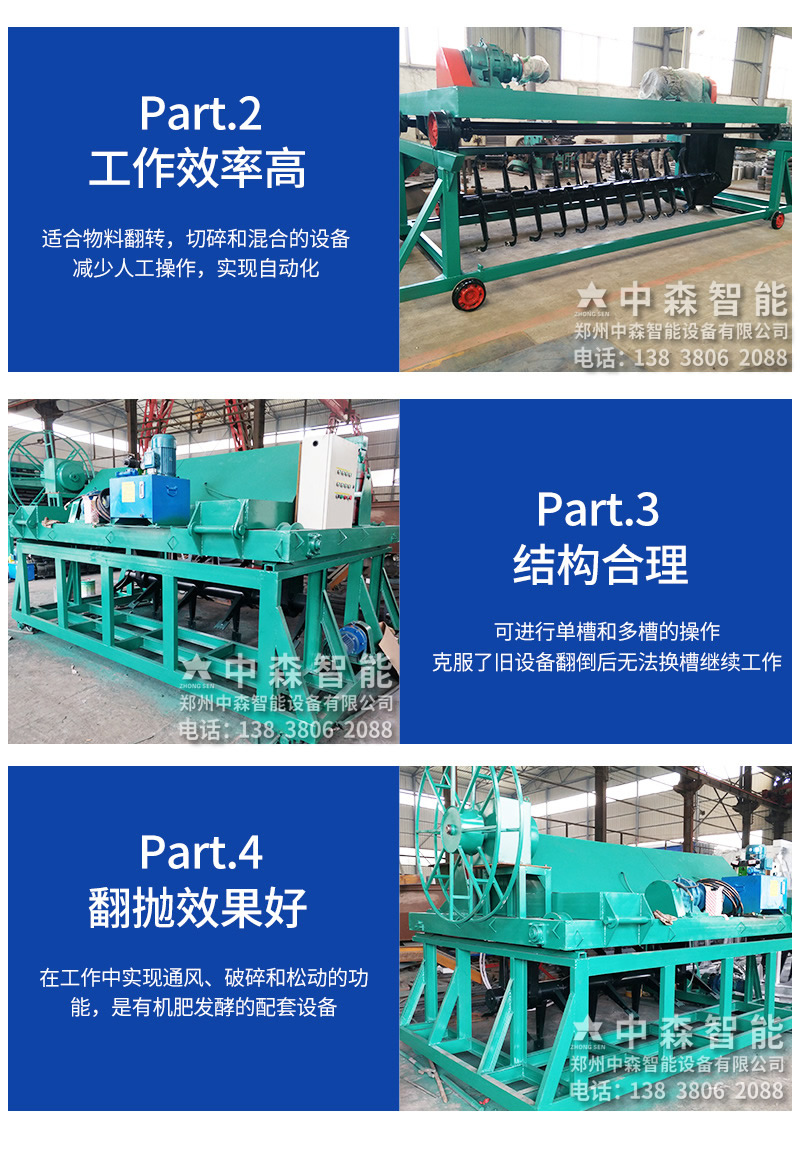 槽式發酵翻堆機采用地槽結構,可根據廠房結構設計一機多槽使用的有機肥翻拋機系列產品,具有操作簡單、發酵周期短、發酵充分、污染小、養殖場翻堆機擴廣方便等特點。