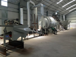 在筒體內(nèi)的石英砂會(huì)被內(nèi)部安裝的擋板,統(tǒng)稱揚(yáng)料板揚(yáng)起,由于揚(yáng)料板設(shè)計(jì)的形式多樣,石英砂會(huì)在不同的高度被揚(yáng)起,形成錯(cuò)落的石英砂流,高溫氣流就從其中穿過,增加了與石英砂的接觸時(shí)間和接觸面,使內(nèi)部的水分干燥更快,如此反復(fù)循環(huán)幾個(gè)回合之后,石英砂與水分徹底分離,水分受熱在筒體的頂部被風(fēng)機(jī)抽出,干燥的石英砂則從下料口出料。被抽出的高濕氣體種會(huì)含有一些石英砂粉末顆粒,排放到環(huán)境種會(huì)用污染,一般需要經(jīng)過旋風(fēng)除塵器過濾下即可。
