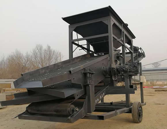 3.拆裝轉場簡便:振動篩沙機設備的高度整體性便于施工現場存放或轉場運輸,拆裝部件只有成品堆料皮帶機,松開底部固定螺栓和吊掛鋼絲繩,將成品皮帶機塞入主框架底面即可。
